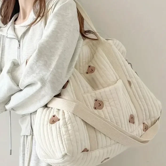 Nasza torba z motywem misia 艂膮czy funkcjonalno艣膰 z subtelnym urokiem dzieci臋cego wzoru. Jest lekka, pojemna i pi臋kna – idealna na spacer, do szpitala, do auta i na codzienne wyj艣cia.
